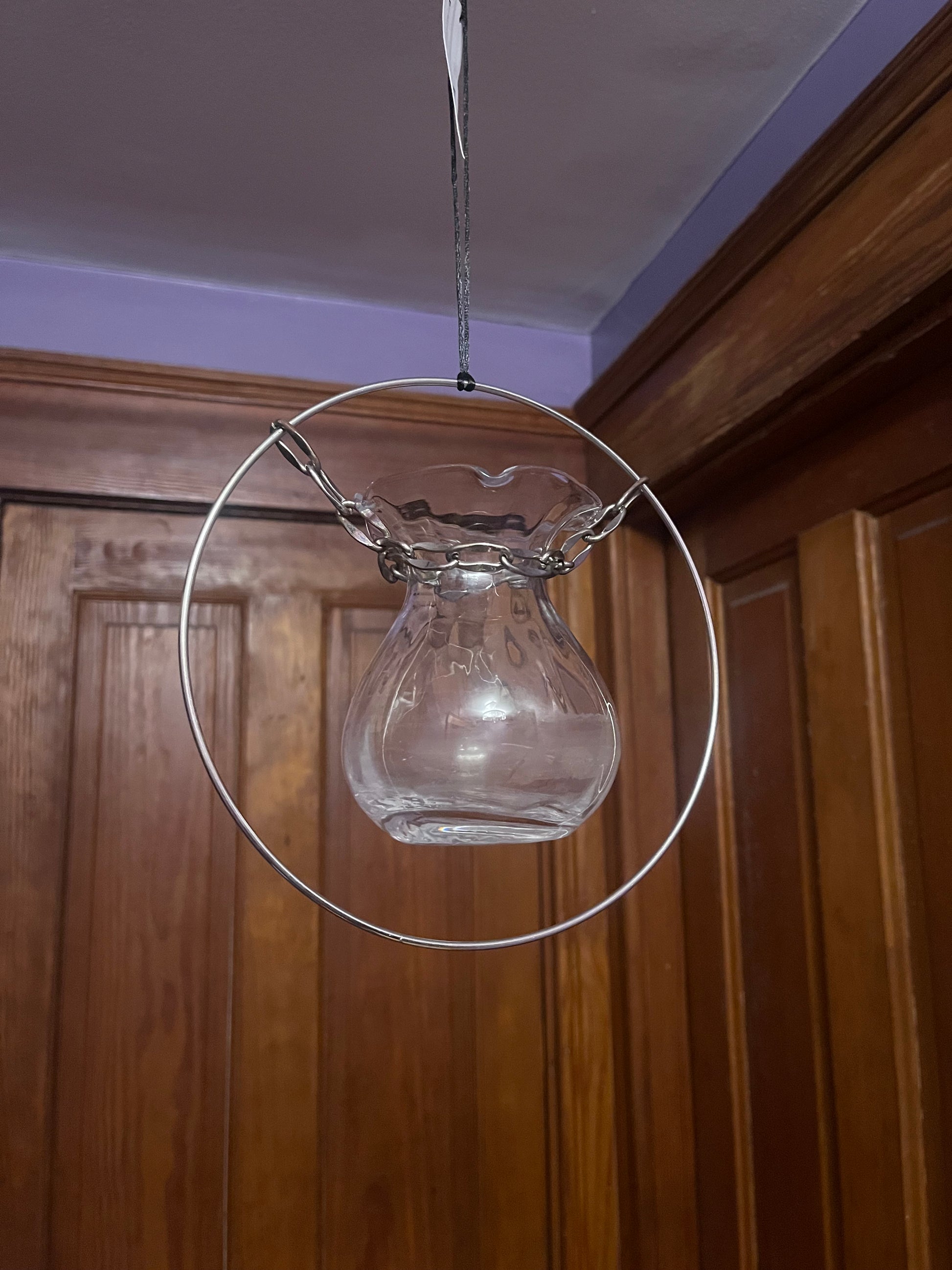 Clear upcycled vase hanging in your window is a great spot for those cuttings